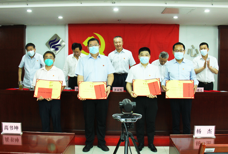 党委委员、副总经理高书坤宣读了《关于表彰2021-2022年度“先进党组织”“优秀党务工作者”和“优秀共产党员”的决定》,AOC中国官方网站领导班子成员为获得先进的4个基层党组织、7名优秀党务工作者和46名优秀党员代表颁发奖状进行表彰,号召各级党组织和全体党员以先进为榜样,坚定理想信念,发扬优良传统,进一步发挥战斗堡垒作用和先锋模范作用。